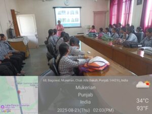 On World Entrepreneurship Day (21st August 2025), the IIC and Department of BBA of Dasmesh Girls College, Mukerian, organized an extension lecture on “Women Entrepreneurs in India”. Dr. Sonia Devi (HOD, Commerce) addressed 68 students, emphasizing the importance of self-confidence, innovation, financial literacy, and awareness of government schemes. She highlighted success stories of women entrepreneurs like Kiran Mazumdar-Shaw, Vandana Luthra, and Falguni Nayar, inspiring students to pursue entrepreneurship. The interactive session discussed challenges such as gender bias, financial barriers, and family support, while encouraging young women to utilize initiatives like Stand-Up India, Mudra Yojana, and Startup India.