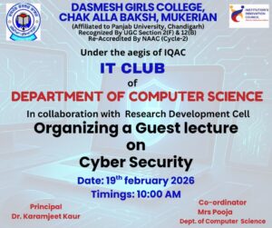 IT Club of Dasmesh Girls College has taken an initiative for spreading Awareness regarding Cybersecurity