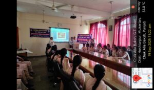 💡 Motivational Lecture – NSS volunteer Ms. Tanisha Patial inspired students with her talk on “The Role of Youth in Emerging Indian Society: Innovation & Entrepreneurship” – encouraging creativity, initiative, and nation-building.