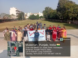 On September 21, the Red Ribbon Club of Dasmesh Girls College, Chak Alla Baksh Mukerian, organized an inspiring extension lecture on the theme “Teachings of Bhai Ghanaiya Ji,” under the mentorship of Principal Dr. Karamjit Kaur. The event highlighted the profound teachings of Bhai Kanahiya Ji, a revered figure known for his selfless service to humanity.