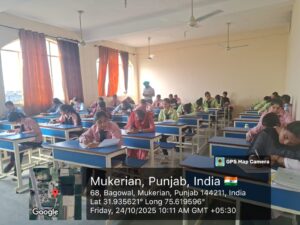 Under the able guidance of Principal Dr. Karamjit Kaur Brar, a Moral Education Examination was organized at Dasmesh Girls College, Chak Alla Baksh, Mukerian by the Guru Gobind Singh Study Circle, Ludhiana. Students from various classes enthusiastically participated in this examination.