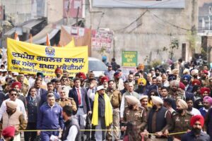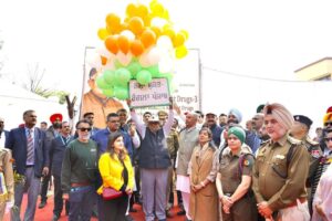 The March began at the Tehsil Complex, Mukerian, led by an NCC band. Balloons were released and a torch lit by sports personalities symbolized the anti-drug fight.