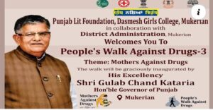 People’s Walk Against Drugs-3 was held by Dasmesh Girls College,Mukerian in collaboration with Punjab Lit Foundation and District Administration Mukerian on 23 February,2026. Hon’ble Governor of Punjab #Sh_Gulab_Chand_Kataria led this ‘Anti-Drug Foot March’ .