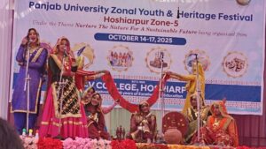 The college secured top positions in *Classical Music, Classical Vocal, Classical Dance, Folk Song, Knitting, Pranda, Khidoo Making, Peerhi Making, Rassa Vatna, Vaar, and several individual categories. Students also excelled in **Group Bhajan, Luddi, Play, Bhand, Heritage Quiz, Elocution, and **Handwriting Competitions*. Overall, the team showcased outstanding talent, dedication, and cultural spirit throughout all four days of the festival.